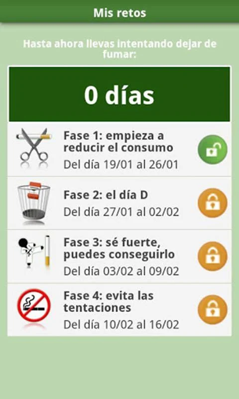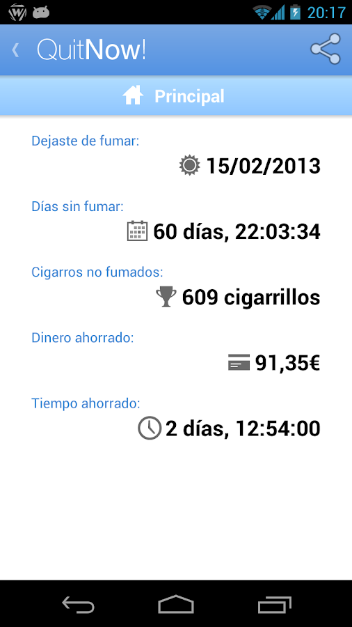 - QuitNow! [iOS, Android / Free]: Esta aplicación ofrece un seguimiento personalizado de los hábitos del fumador; permite ir marcando los objetivos cumplidos hasta dejar de fumar
